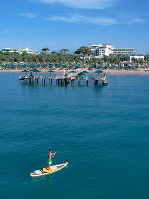 Погрузитесь в безмятежность, занимаясь паддлингом в Rixos Premium Belek - уникальным видом спорта, сочетающим спокойствие, фитнес и живописную природу. Будь вы новичок или профессионал, наслаждайтесь спокойными бирюзовыми водами и поднимайте настроение с каждым гребком.