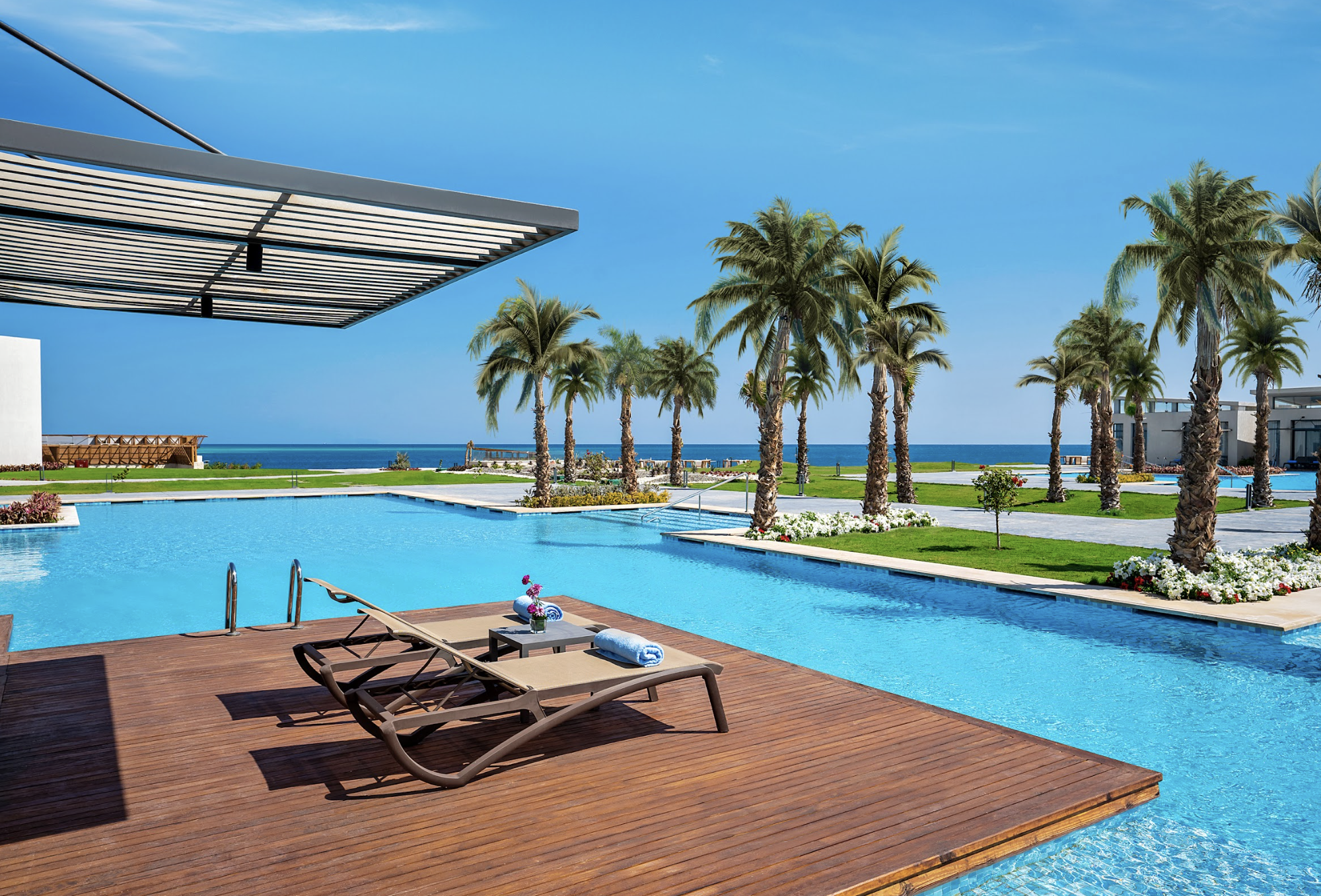 Этот люкс площадью 130 м2 с потрясающим видом на бассейн и море располагает гостиной с элегантным диваном, спальней с кроватью размера "super king-size" и балконом. Наслаждайтесь великолепным видом на Красное море, расположенным на первой линии.